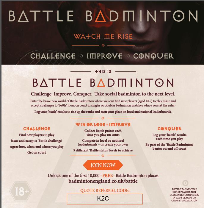 Meanwhile adults can test their badminton skills against others in the new Battle Badminton initiative from Badminton England supported by Freedom Leisure. It’s aimed at non-league and non-county players and is a lot of fun.